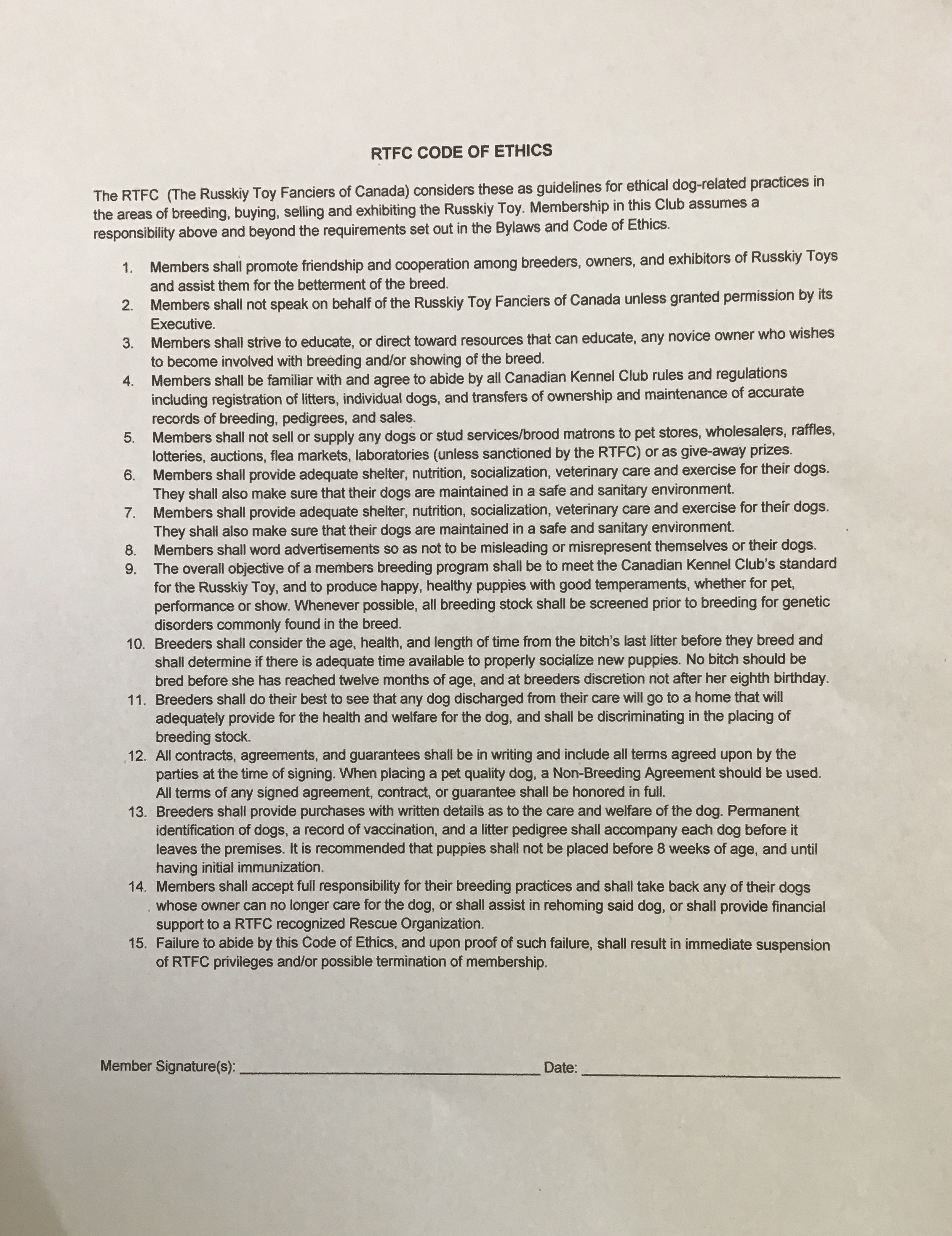 Please email marilynbernard54@gmail.com and a membership application form will be emailed back to you. This code of ethics will also be sent for signature and must accompany the application back to me.